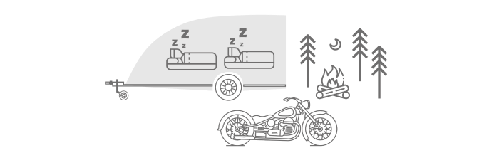 Причіп герметичний та повністю захищає мотоцикл від впливу навколишнього середовища – ідеально підходить для зберігання мотоцикла в міжсезоння або під час тривалих перерв між поїздками.