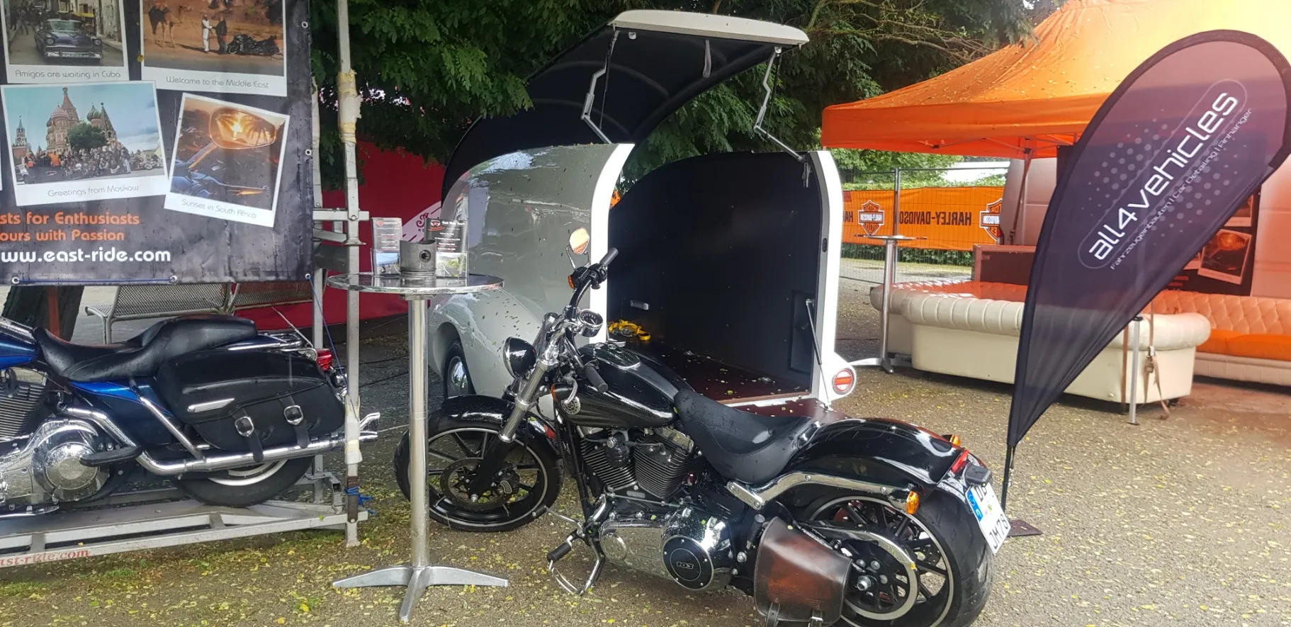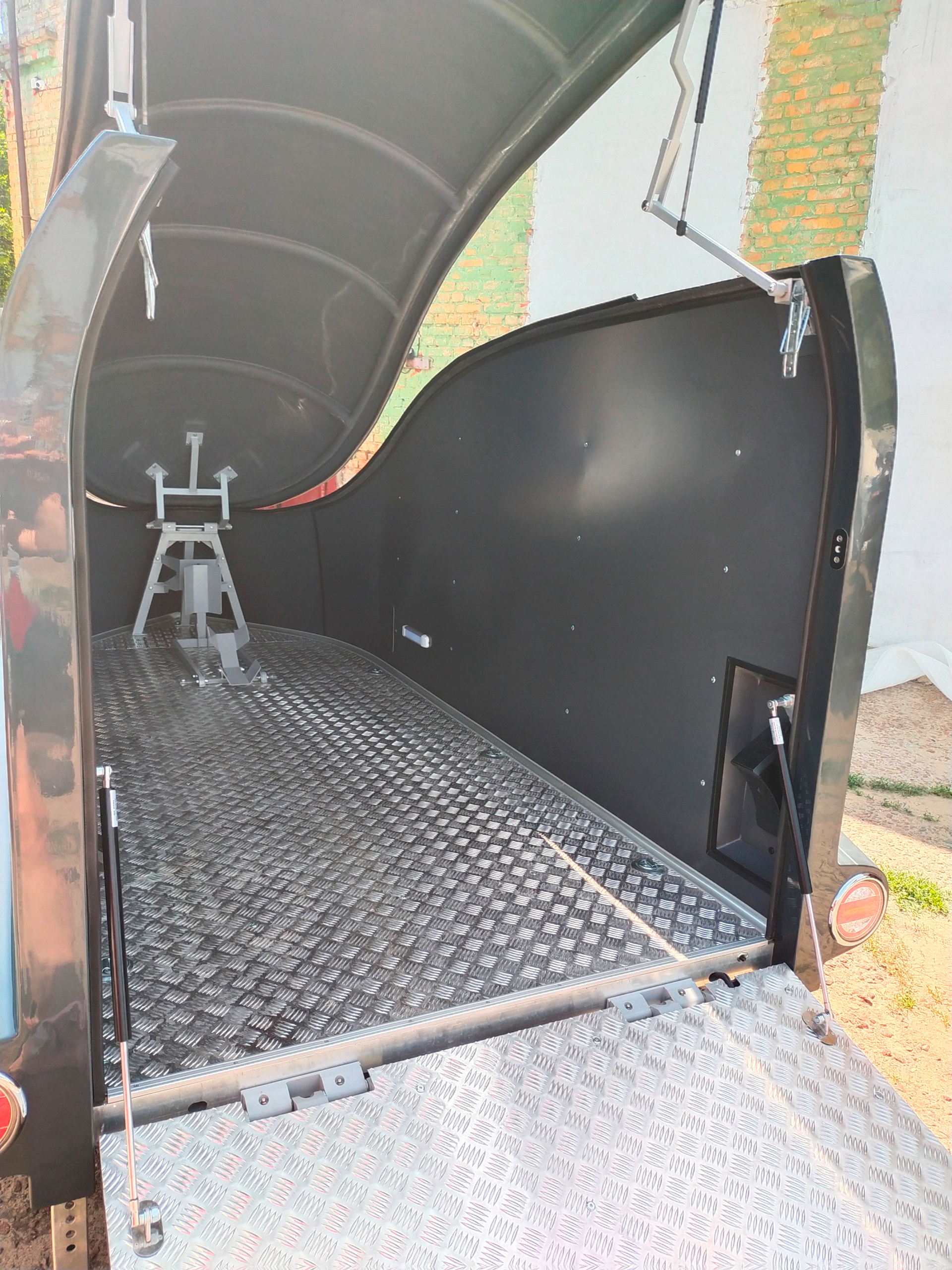 Відкриваючий дах дозволяє зручно зберігати та закріплювати мотоцикл у причепі
