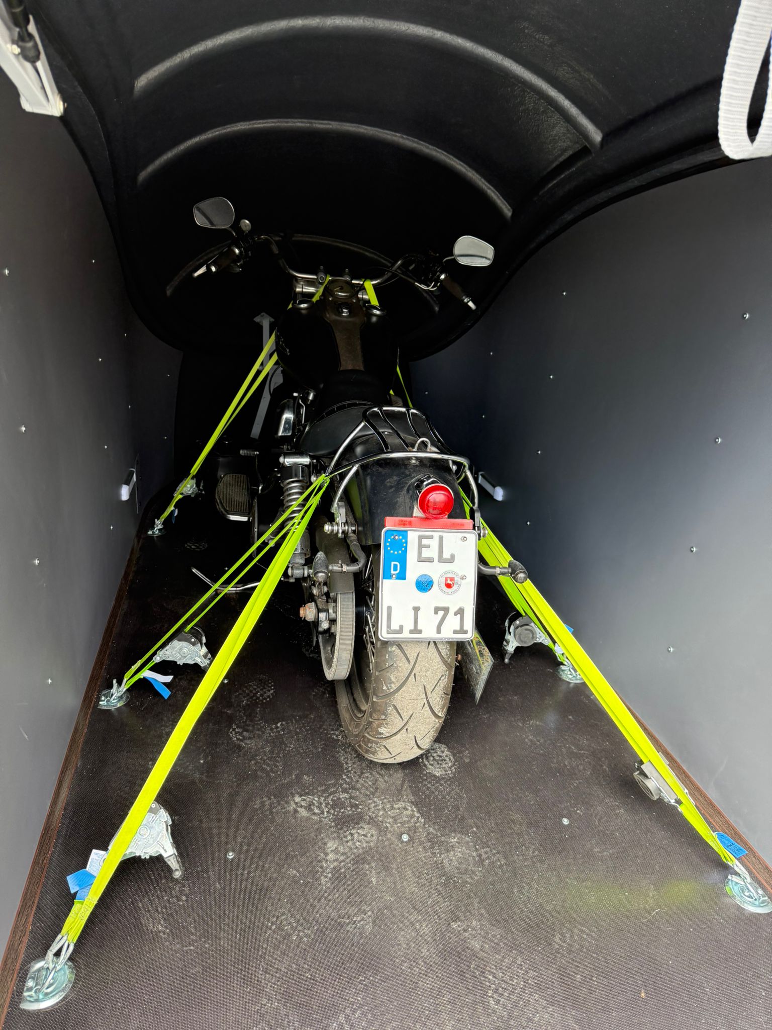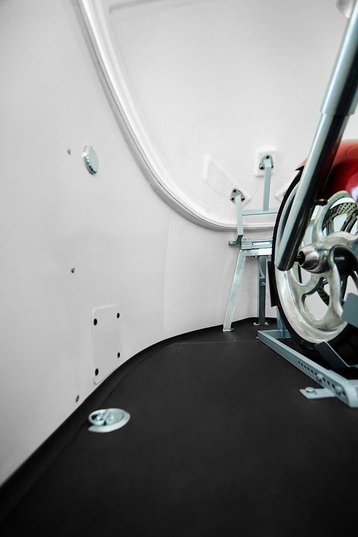 - 6 оцинкованих кілець в підлозі для кріплення мотоцикла