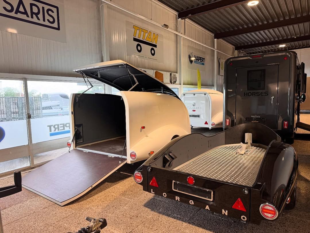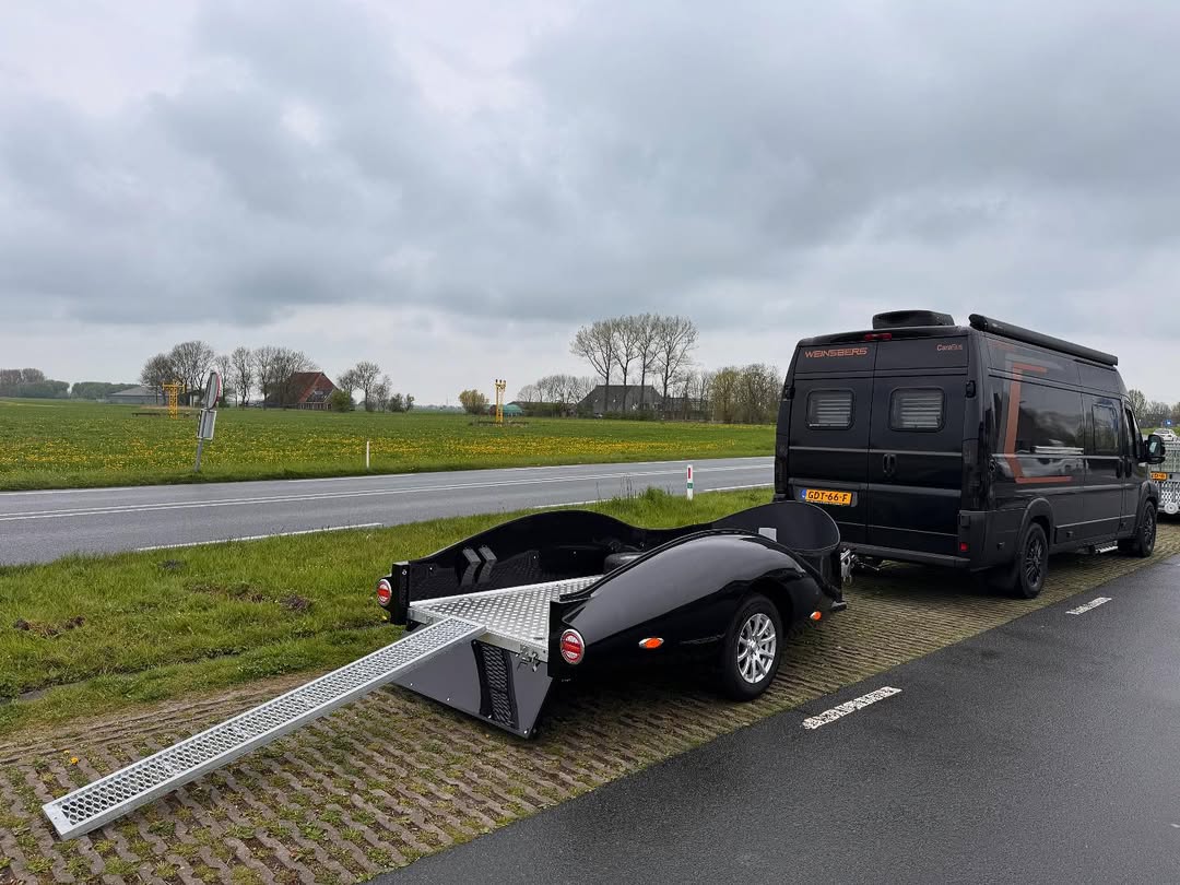 Задній гвинтовий упор, виготовлений із гарячеоцинкованої сталі з функцією домкрата, закріплює причіп під час посадки та висадки з мотоцикла, а також піднімає задню частину причепа достатньо високо, щоб замінити пошкоджену шину. Обмежувач піднімається та опускається вручну за допомогою затискача (входить до комплекту постачання) або за допомогою електричної викрутки.
