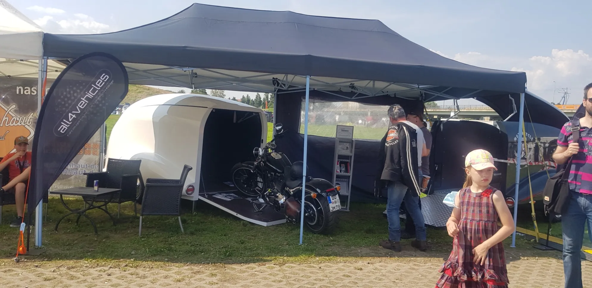 Під час відпочинку на природі, байкерських та спортивних заходів – причіп використовується як зручний, міцний намет